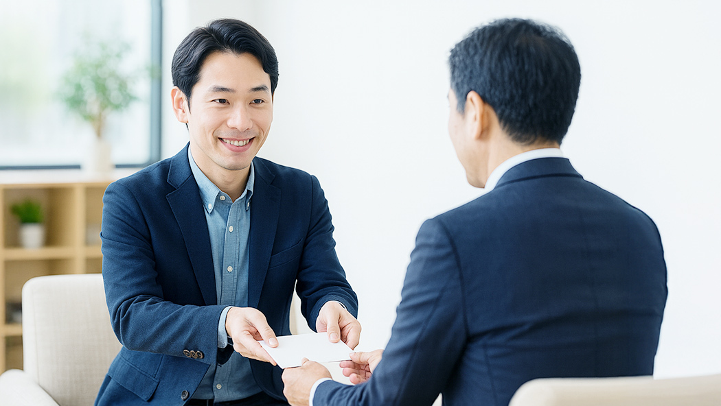 コンパクトで渡しやすい ハガキサイズなので手軽に持ち運びでき、スマートにお渡しいただけます。