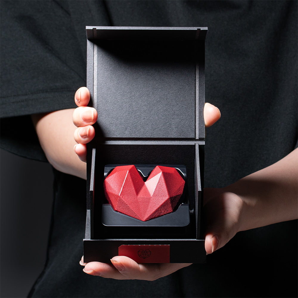 ■宝石のように美しい、ハート形のチョコレート。箱を開けると真紅のハートが姿を現し、まるで宝石箱を開けた時のような感動が広がります。ミルクチョコレートでかたどった手のひらサイズのハートの中に、心ときめく3つのハートを詰め込みました。ポップロック、マカダム、ブラウニーと、多彩な味わいが最後の一口まで幸せを届けます。溢れる愛をハートに込めて、心に残る特別なチョコレートを贈りませんか。