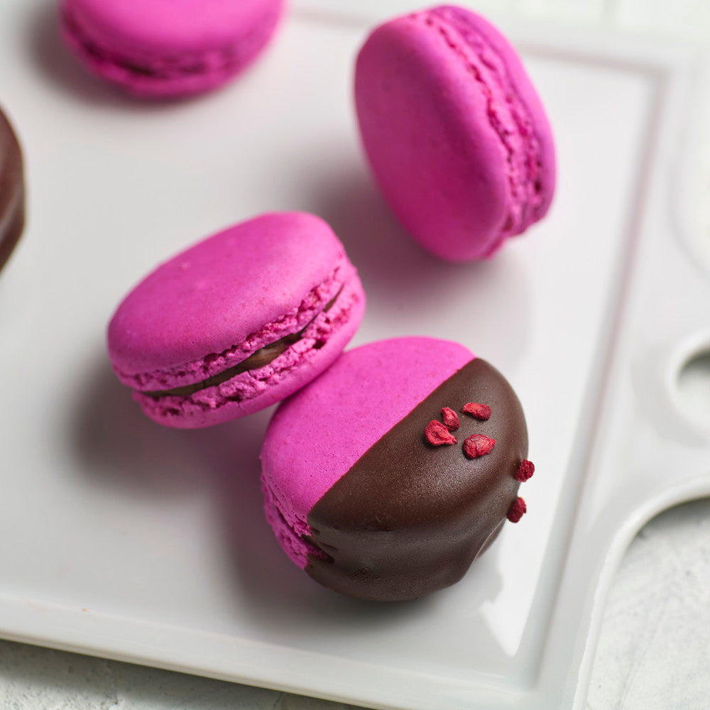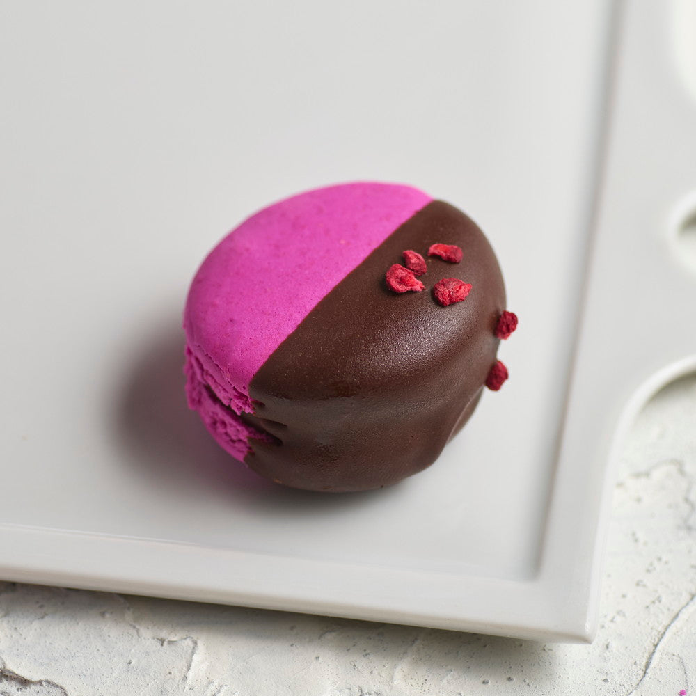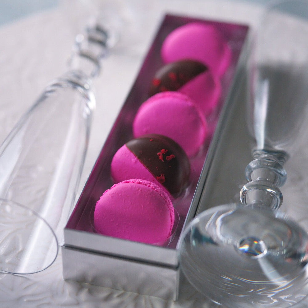 厳選したベルギー産ビターミルクチョコレートとピンクシャンパンガナッシュをサンドしたマカロンです。