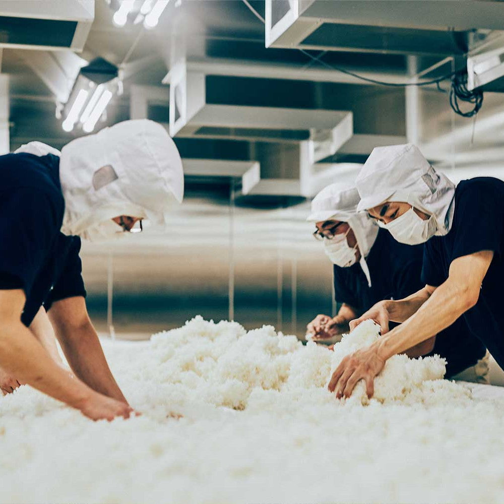 使うのは、よい米と水、麹だけ。酒造りもできる限り、昔ながらの手作業にこだわります。理想とするのは、食中酒として楽しめる、料理によりそう飽きのこない味わい。すっと澄んだ清らかな後味こそ、「玉乃光」が守り続ける誠実さの証です。
